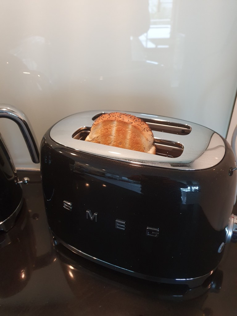 Nu efter 8 behandlingar känner jag att det händer grejer. Passar på att äta det som jag kommer åt nu medans jag kan. Rostade mackor med aprikosmarmelad och ost fick det bli när jag kom hem.